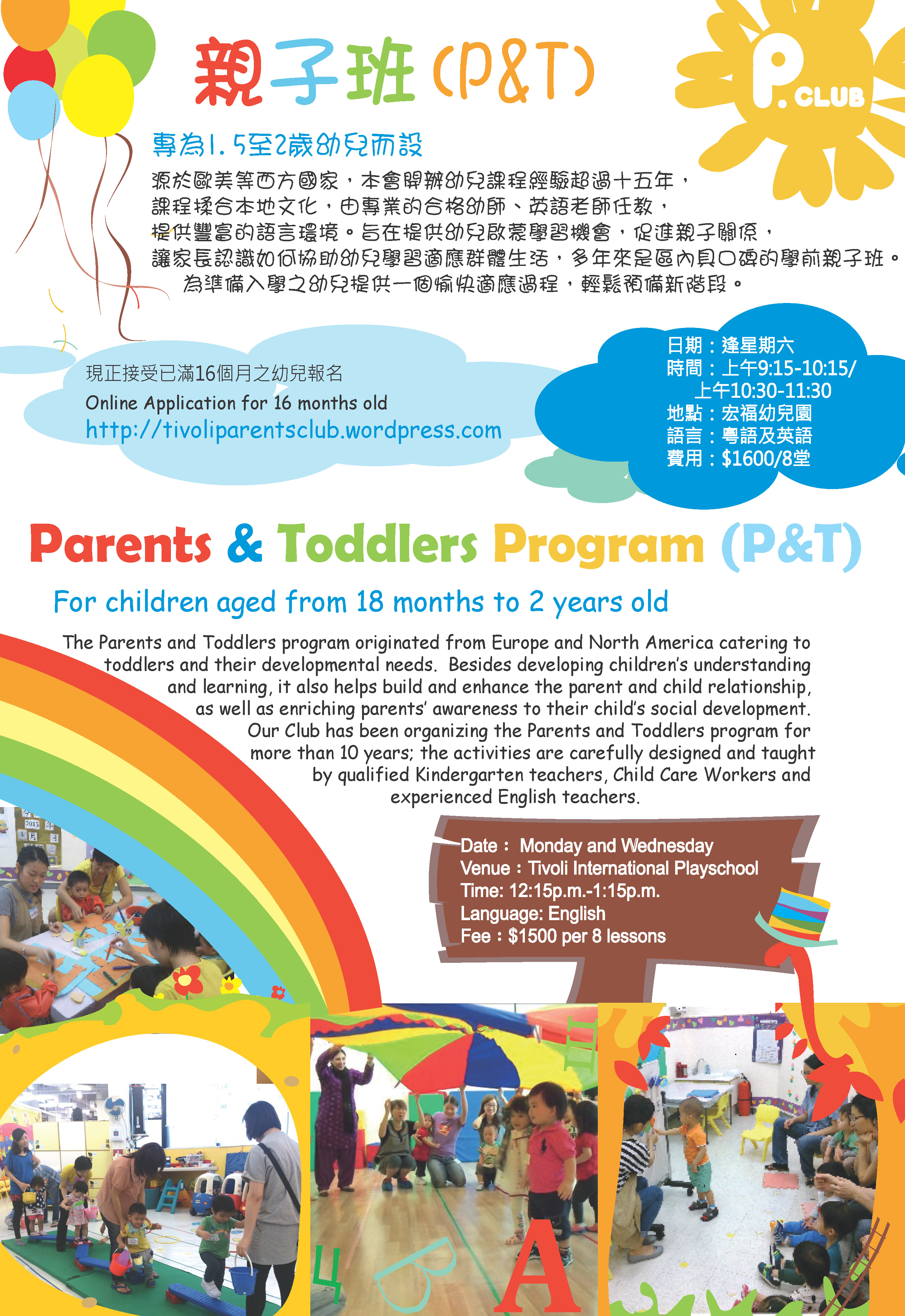 親子班 學前適應班 現正招生 28/11/201328/11/2013 Tivoli Parents' Club 本會資訊 已滿2歲之親子班參加者可優先報讀學前適應班,開課日期為2014年1月,請按此瀏覽上課日期 按此報上網名 Click to email a link to a friend (Opens in new window) Email Click to print (Opens in new window) Print More Click to share on Reddit (Opens in new window) Reddit Click to share on X (Opens in new window) X Like Loading... Related