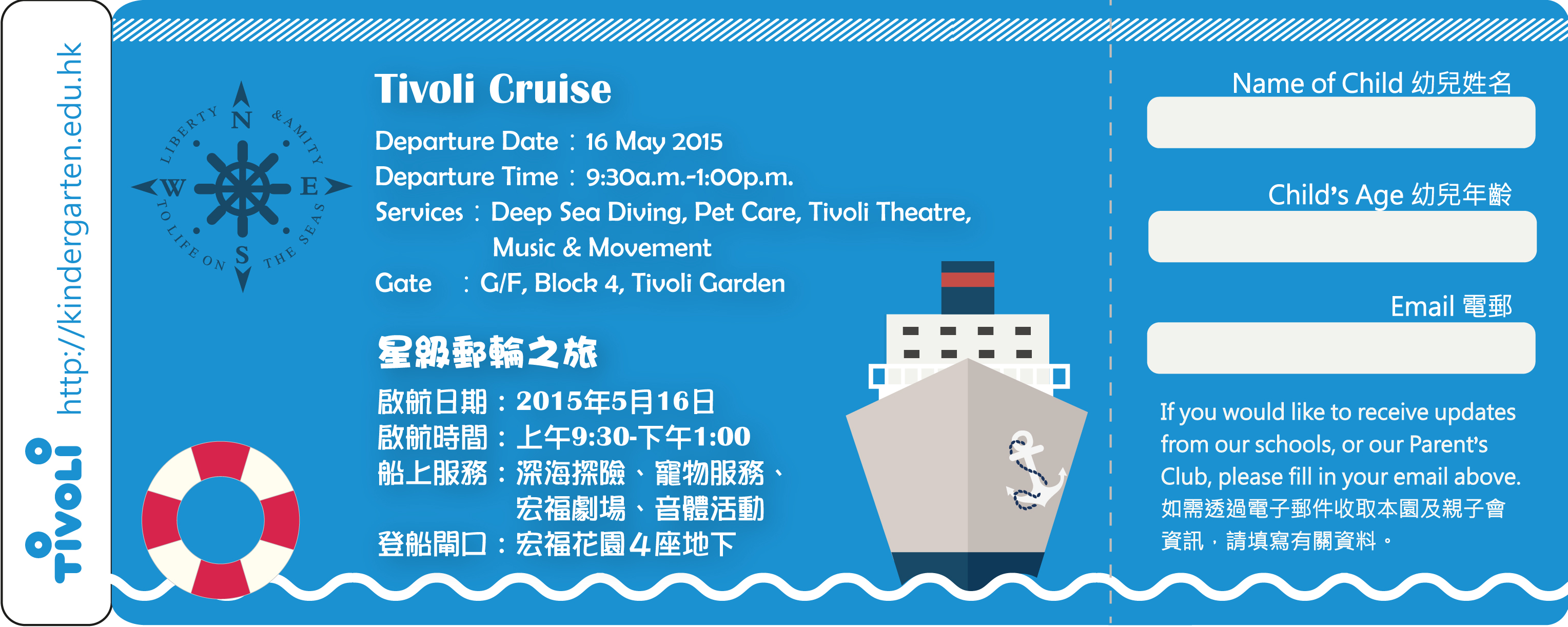 宏福聯校開放日(本地課程) 06/05/201519/05/2015 Tivoli Parents' Club 本會資訊 記得列印船票及嘉年華入場券來參加啊! Click to email a link to a friend (Opens in new window) Email Click to print (Opens in new window) Print More Click to share on Reddit (Opens in new window) Reddit Click to share on X (Opens in new window) X Like Loading... Related