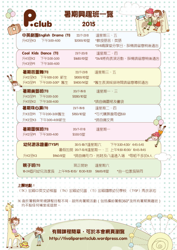 - 費用: 兩週(7月6日至17日/ 7月20日至31日)$ 5,000
