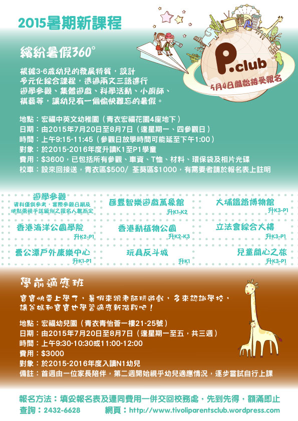 - 單堂選擇: 倘若每堂課程仍有餘額,本會接受申請(每堂$ 200)