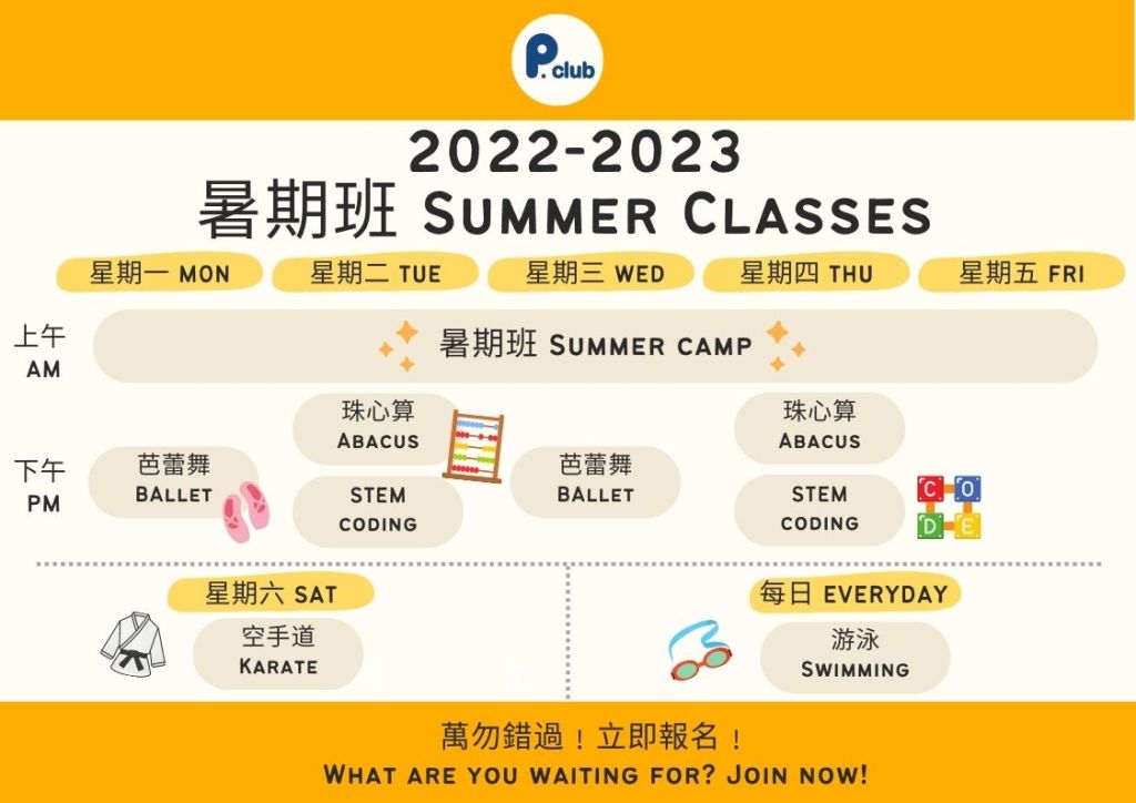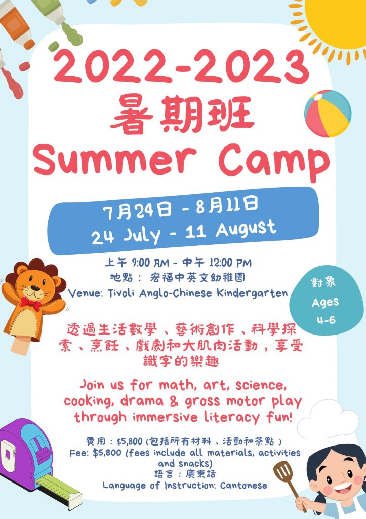 | 暑期繽紛夏令營 Summer Camp | 星期一至四 Mon – Thu | 9:15 – 11:45 | $4800/ 3周 weeks (到6月21日) | K1-K3 |